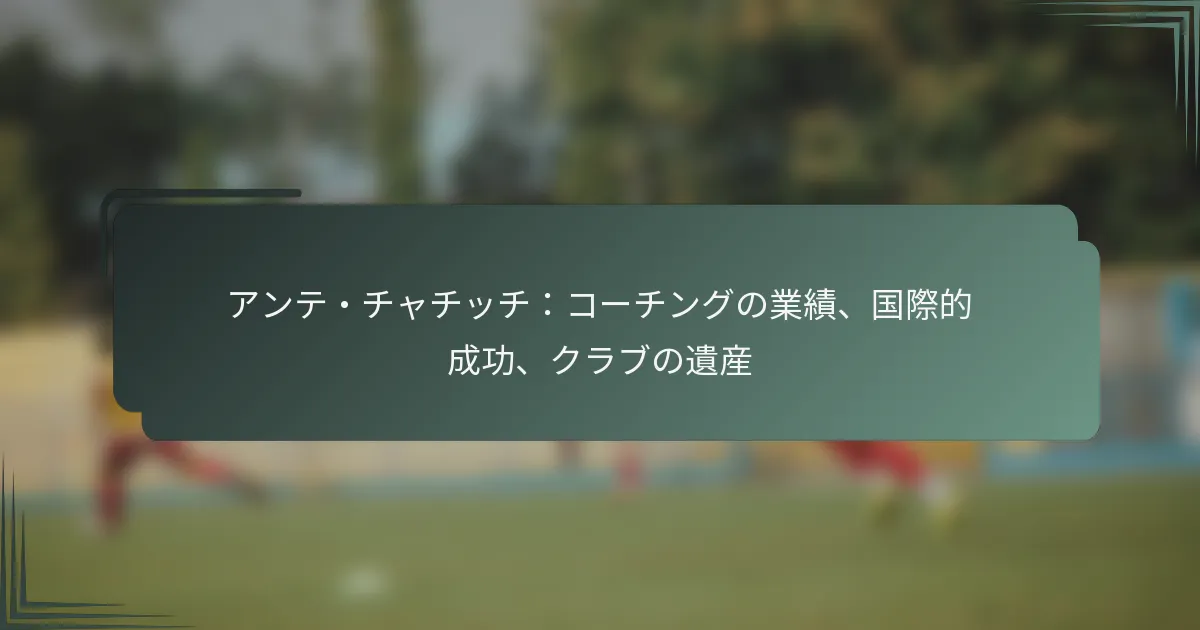 アンテ・チャチッチは、主要なタイトルやスポーツにおける認識を含むさまざまな指導実績を通じてサッカーに重要な貢献をしてきました。彼のキャリアは国際的な成功とクラブレベルでの持続的な遺産の融合を反映しており、チームのパフォーマンスや指導哲学に対する彼の影響を示しています。