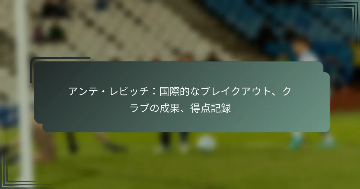 アンテ・レビッチは、特にクロアチア代表チームにおいて国際サッカーの著名な人物として浮上しており、彼の印象的なパフォーマンスは得点力と戦略的役割を際立たせています。彼のさまざまなクラブへの貢献は、選手権や個人賞によって特徴づけられ、ヨーロッパサッカーにおける重要な選手としての地位をさらに確立しています。顕著な得点記録を持つレビッチは、クラブと国際大会の両方で重要な影響を与え続けています。