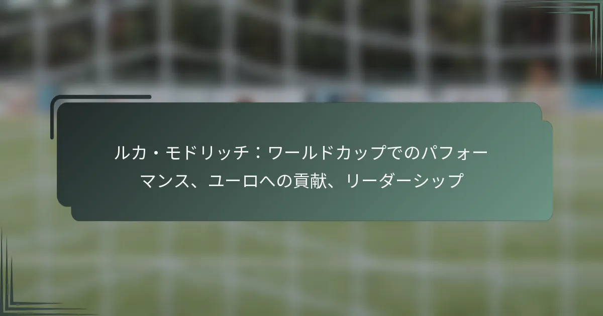 ルカ・モドリッチは、クロアチアのUEFA欧州選手権のキャンペーンにおいて重要な存在であり、卓越したスキルとリーダーシップを発揮しています。彼の貢献は、チームのパフォーマンスを向上させただけでなく、トーナメントの歴史に持続的な影響を与えました。