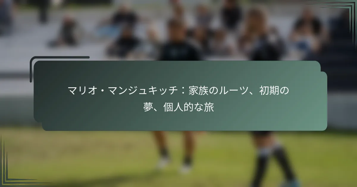 マリオ・マンジュキッチの、クロアチアの田舎での humble beginnings から著名なサッカー選手になるまでの旅は、彼の豊かな文化遺産と支え合う家族環境に深く根ざしています。彼のサッカーで成功したいという初期の願望は、決意と周囲の影響によって育まれ、最終的には彼のキャリアと個人の価値観を形作ることになりました。